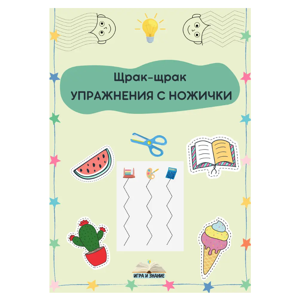 Упражненията включват шаблони с прави линии, зиг-загообразни, вълни, форми и контури на рисунки, които: